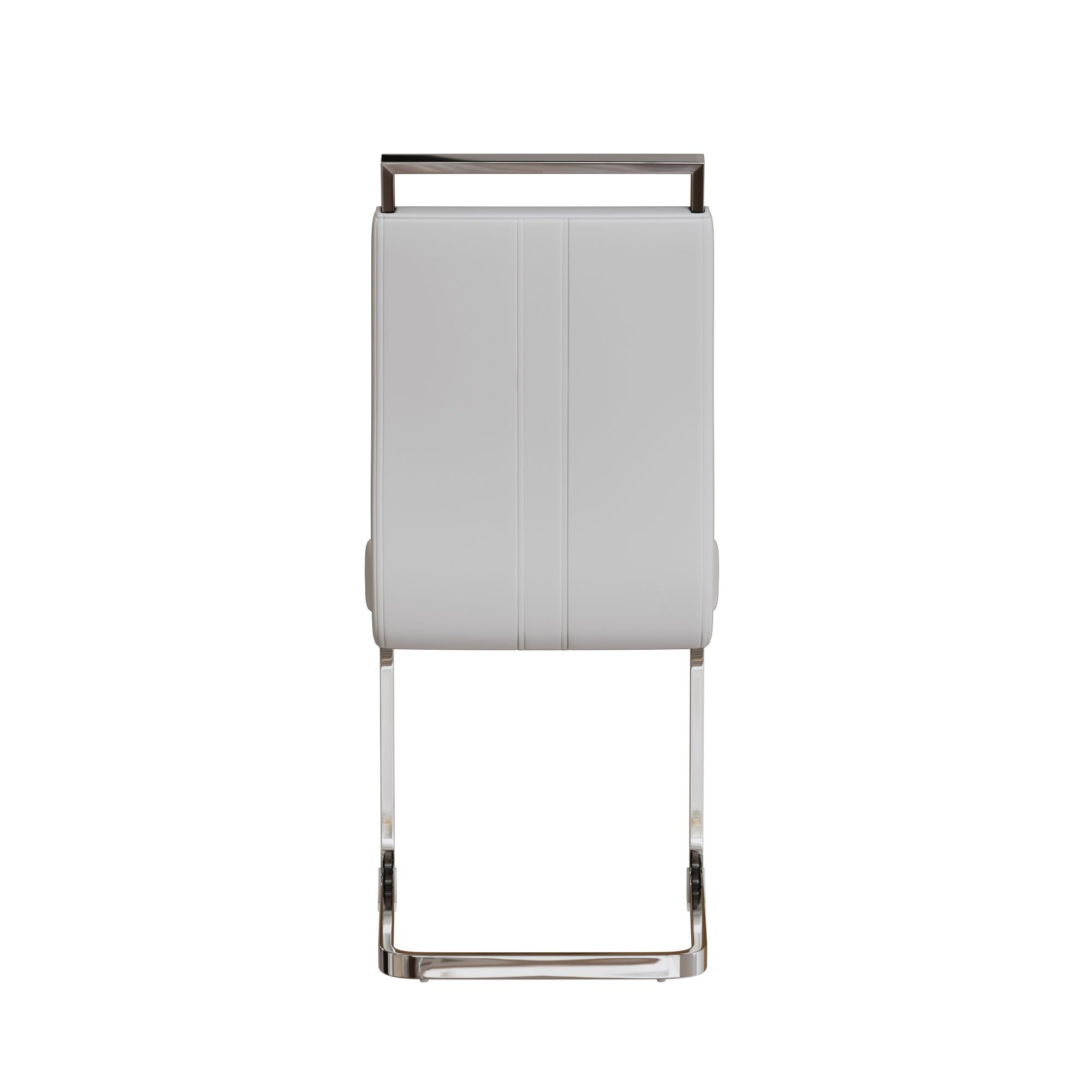 8.Durable and sturdy: The sturdy white leather dining chair is equipped with a C-shaped silver plated base, creating a unique modern appearance. The bottom has scratch resistant plastic feet to prevent damage to the floor.