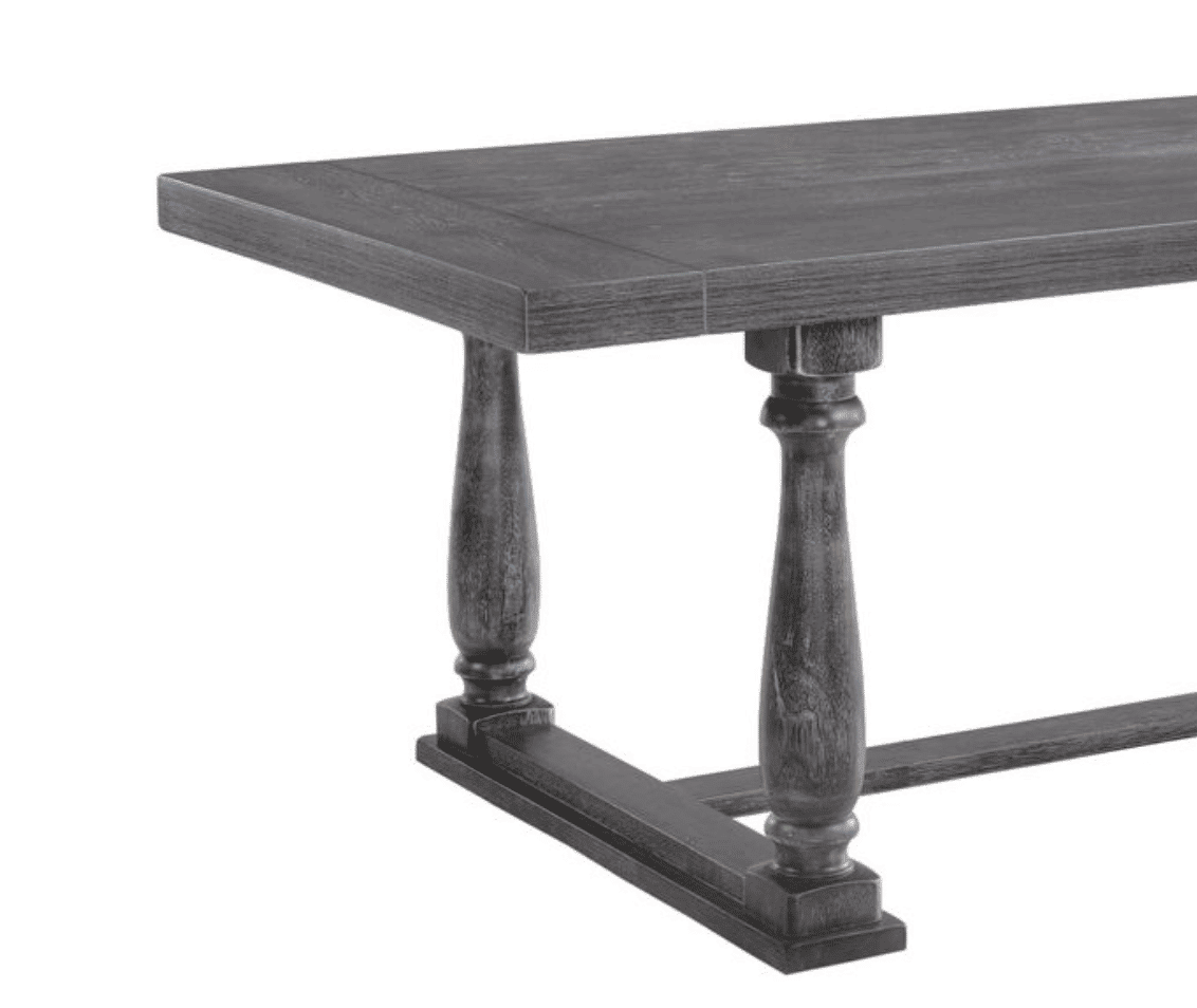 This rectangular dining table with a sturdy wooden trestle base and elegantly turned posts, blending traditional charm with durability.