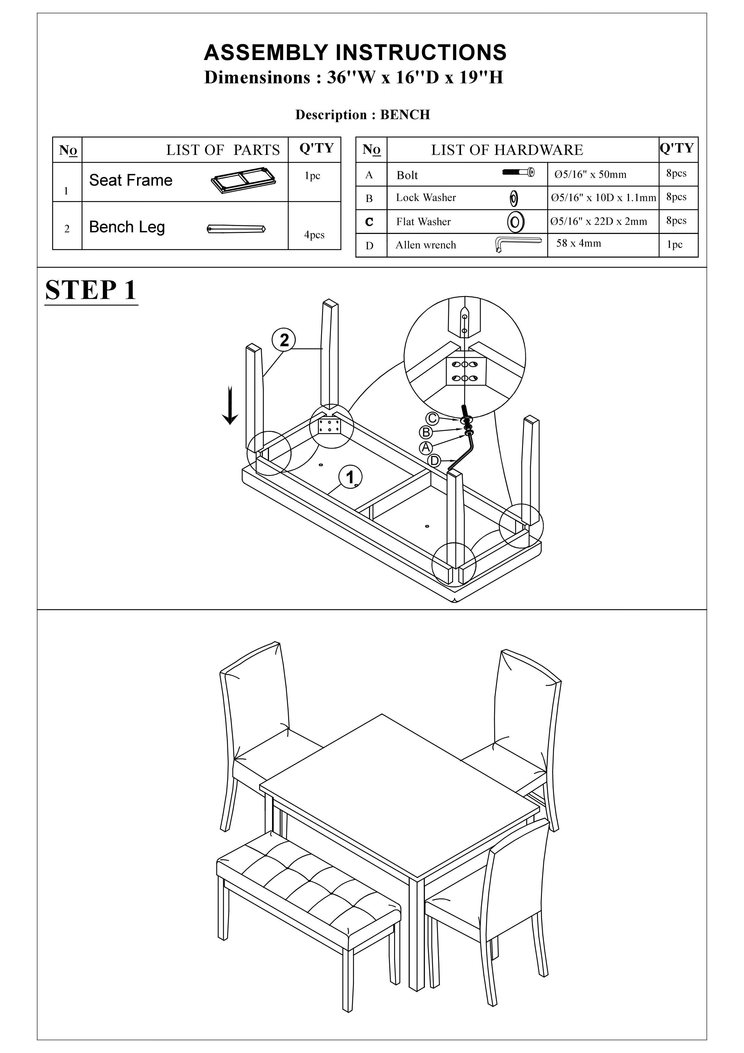 Bench - 36" x 16" x 19"H