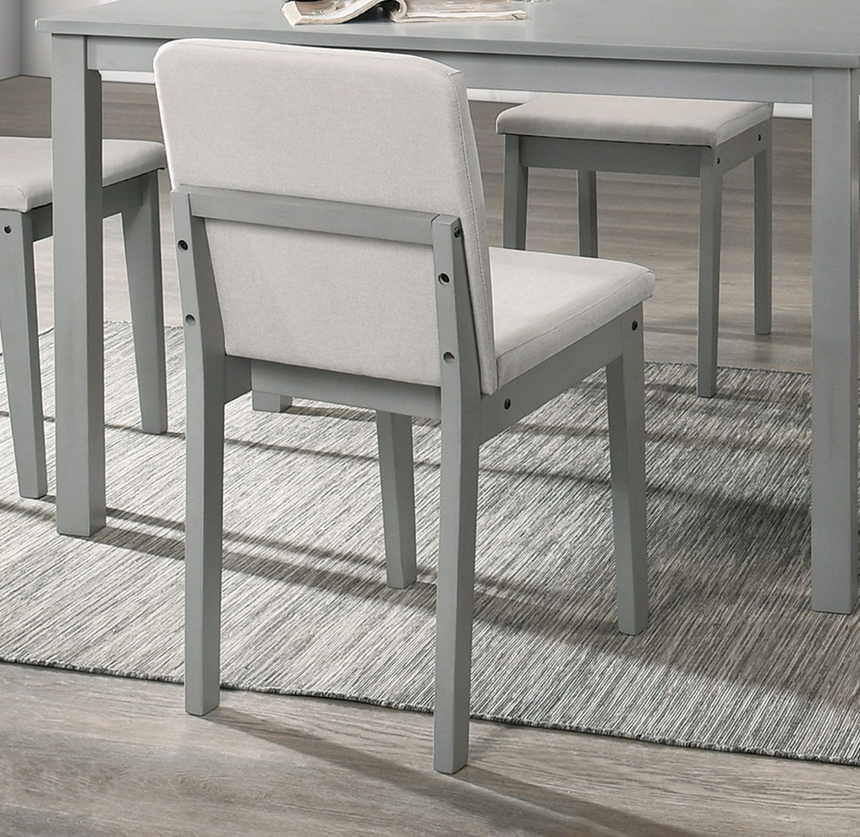 Home > Grey Finish 5pc Dining Room Set Dining Table 4x Chairs Beige Fabric Chair Seat Kitchen Breakfast Dining room Furniture Rubberwood Veneer Unique Design