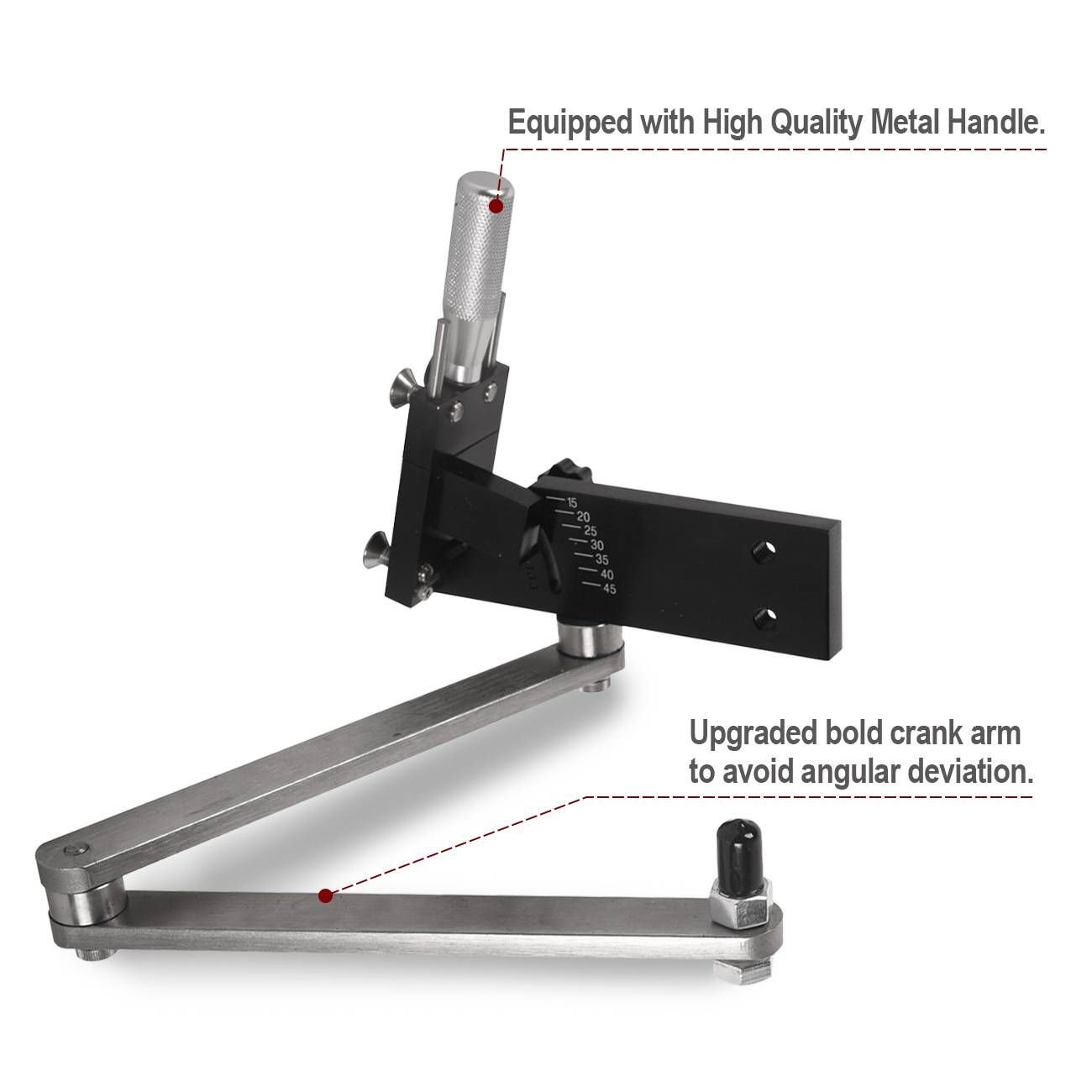 [Quick Cut]The sharpener with unique design has a vice head to hold the mower blade and an articulating arm to attach the grinder. Holds blades securely to perfectly sharpen mulching blades in a matter of seconds. Grinding multiple blades simply and flawlessly.