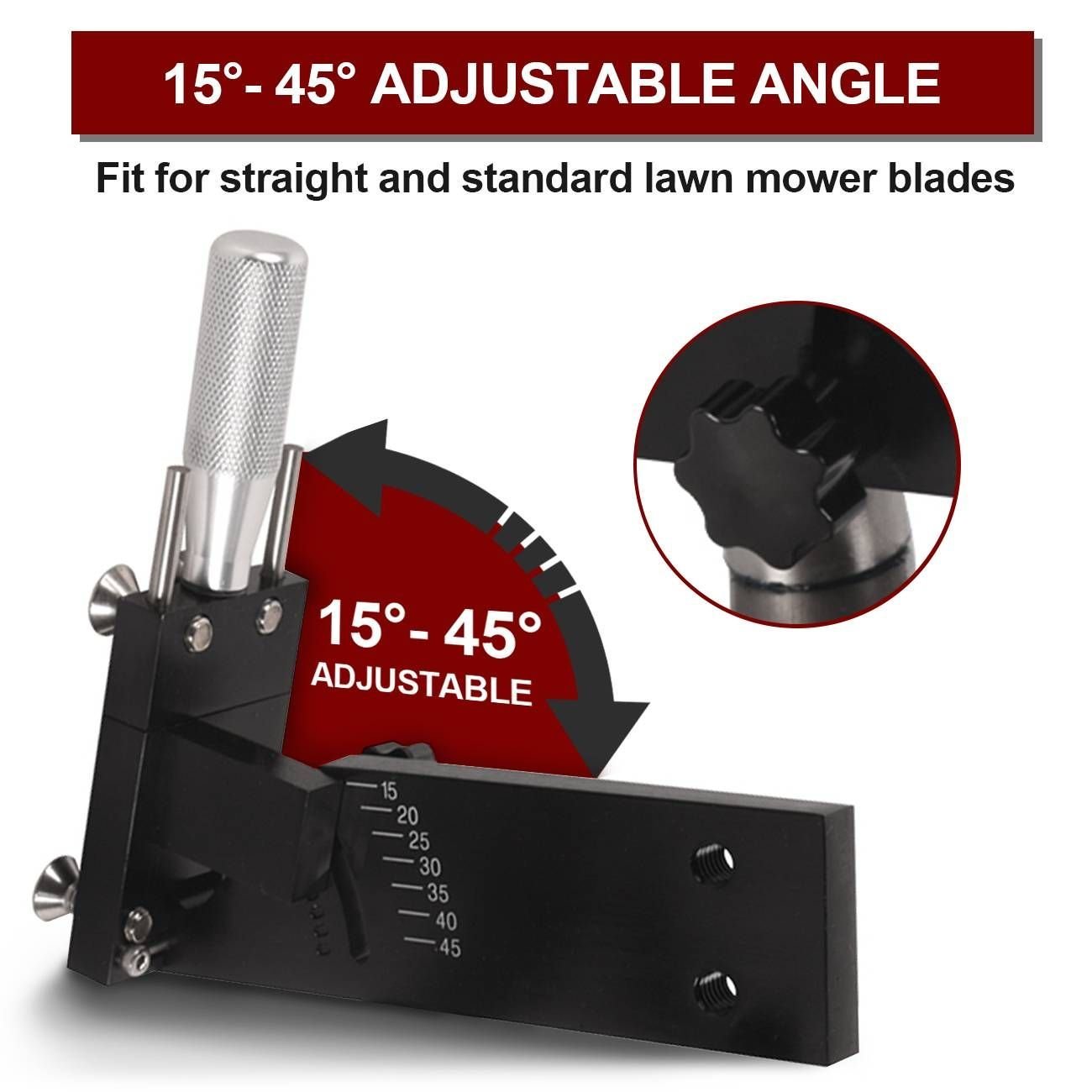 Home > Lawn Mower Blade Sharpener 15°-45° Adjustable Sharpener for Straight and Standard Lawn Mower Blades