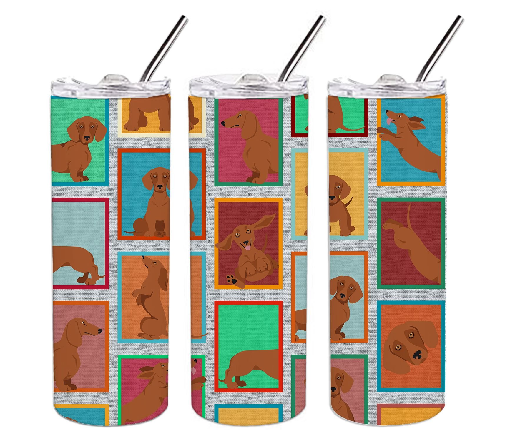 Stainless Steel Skinny Tumbler featuring breed specific Dachshund artwork. Elevate your hydration experience with our Decorative Stainless Steel 20 oz Skinny Tumbler from Caroline's Treasures. This vacuum-insulated, double-walled travel mug is designed to keep your beverages hot or cold for prolonged periods, making it perfect for your coffee, tea, or cocktails. Its sleek and easy-to-grasp design, complemented by the vibrant, top-to-bottom artwork, makes it a stylish accessory for both men and women. Equipped with a secure, slide-open lid, you can enjoy your drinks without worrying about spills, while the included reusable metal straw contributes to reducing plastic use and promoting sustainability. Crafted with quality stainless steel, the tumbler is 100% BPA and Phthalate free, ensuring a safe, non-toxic experience with every sip. Not just functional, this skinny tumbler, complete with gift box, serves as a thoughtful gift for women, mothers, or any loved one. Enjoy your favorite beverages on the go in style, while making a positive impact on the environment. Remember, it's not just a drinkware, it's a lifestyle accessory! Please note: For optimum longevity, hand washing is recommended.