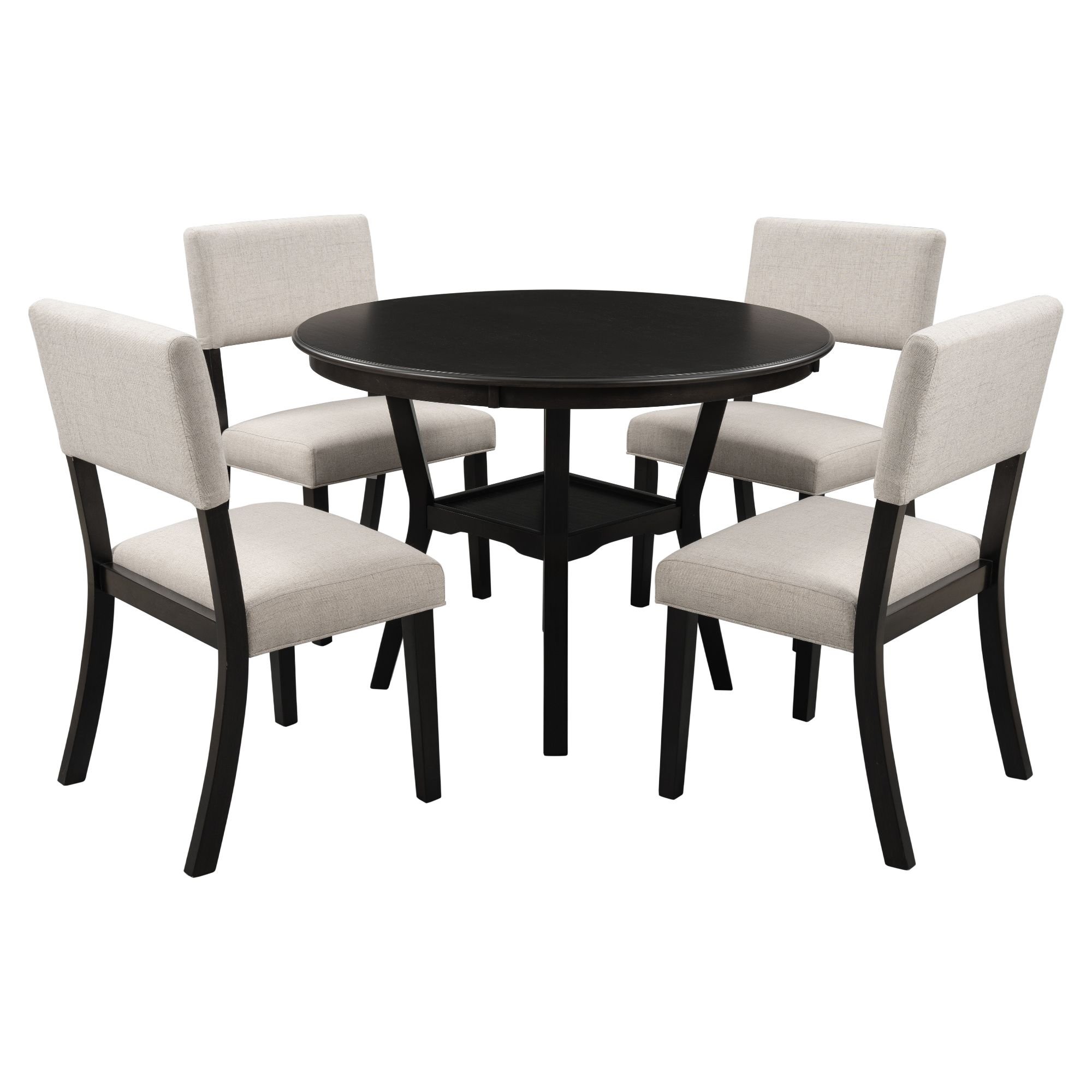 Extra Shelf: This dining set includes a table and 4 matching chairs making for a functional yet compact design that is able to comfortable fit in your spaces while fully accommodating your family. Designed with style and practicality in mind, the shelf on the bottom creates a display area for your magazines, decorative baskets and other daily essentials