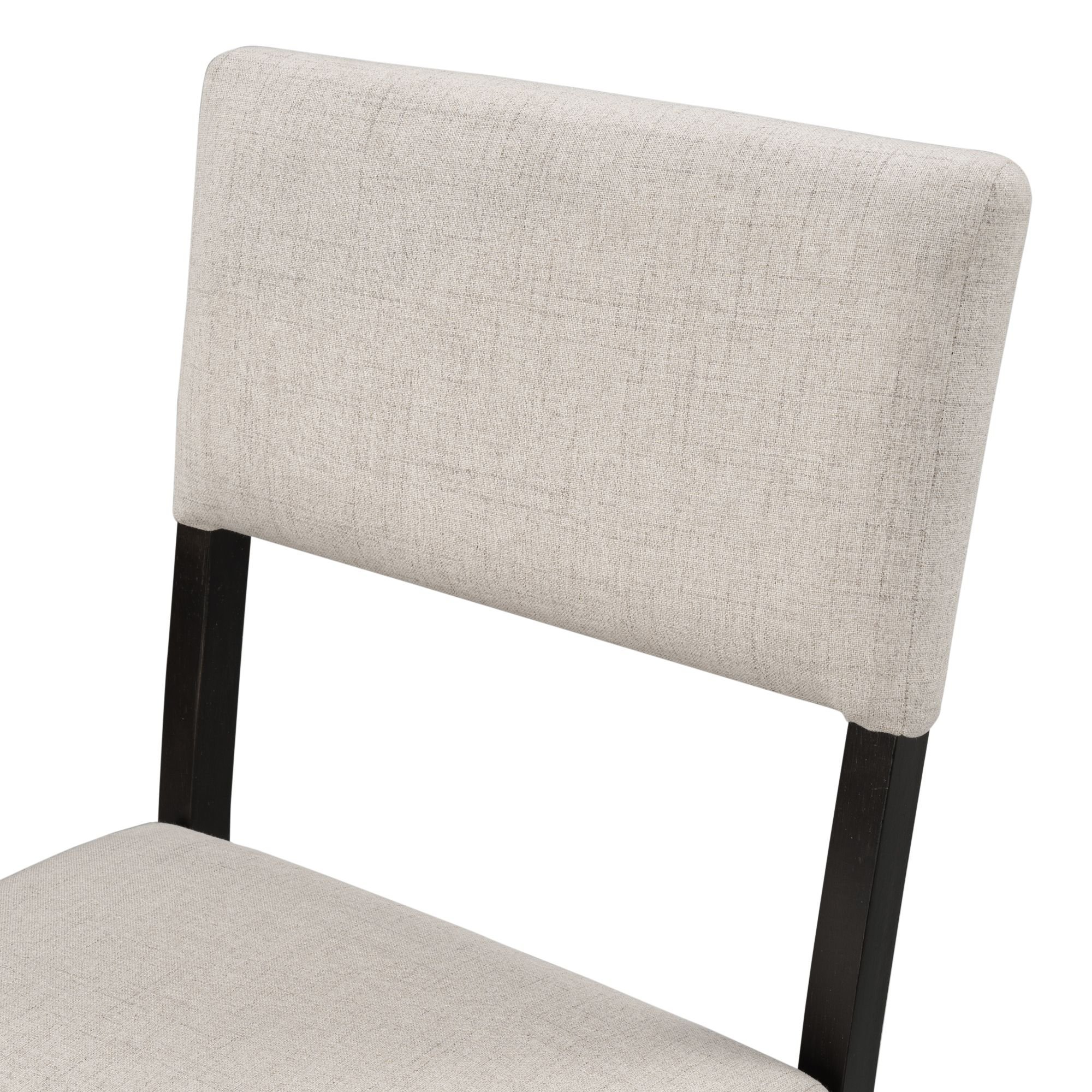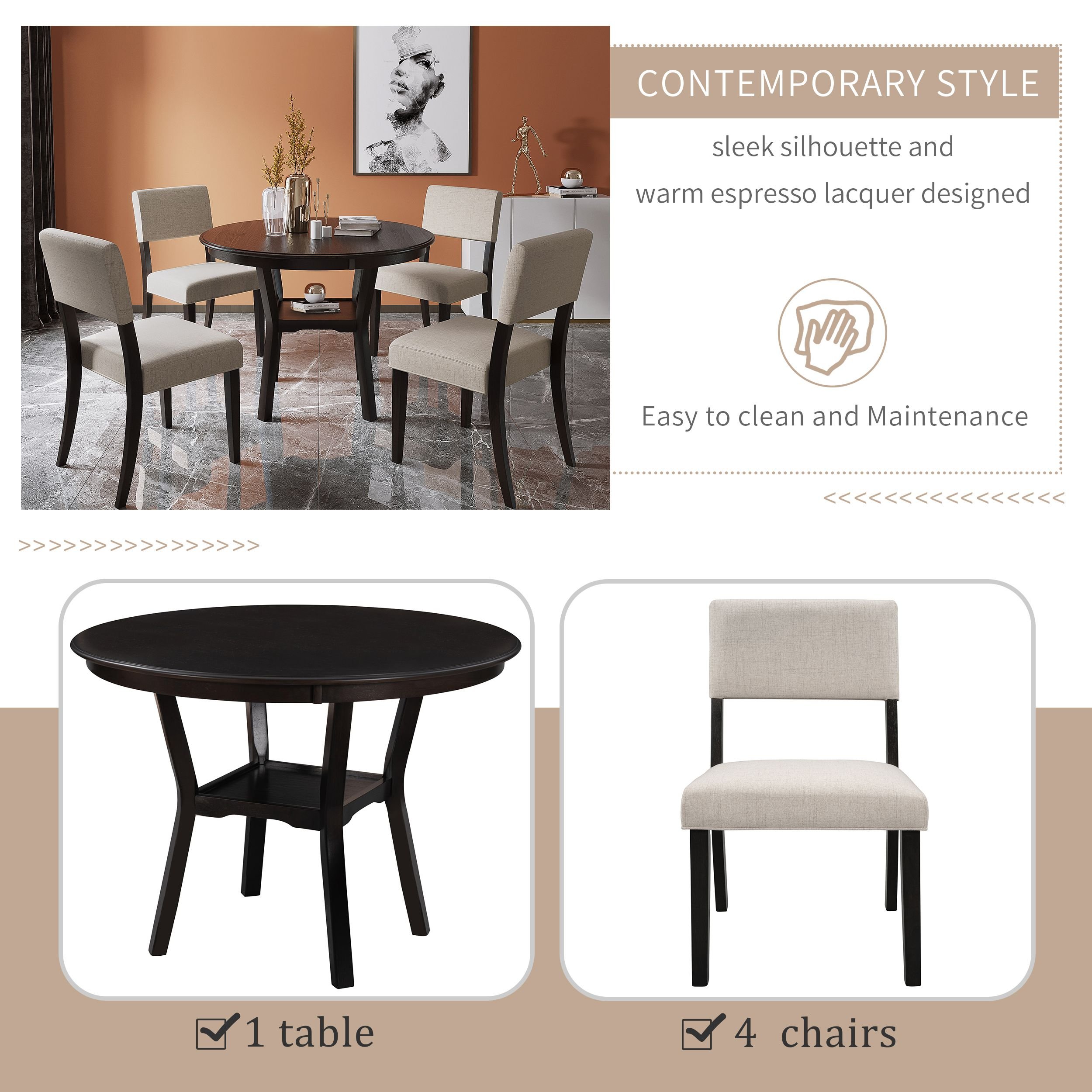 Contemporary Style: This simplistic modern dining set designed with a sleek silhouette and finished in a warm espresso lacquer. Accent wood grain detailing and beige fabric seating tie this set together perfectly, being capable of creating a contemporary look in your kitchen area.