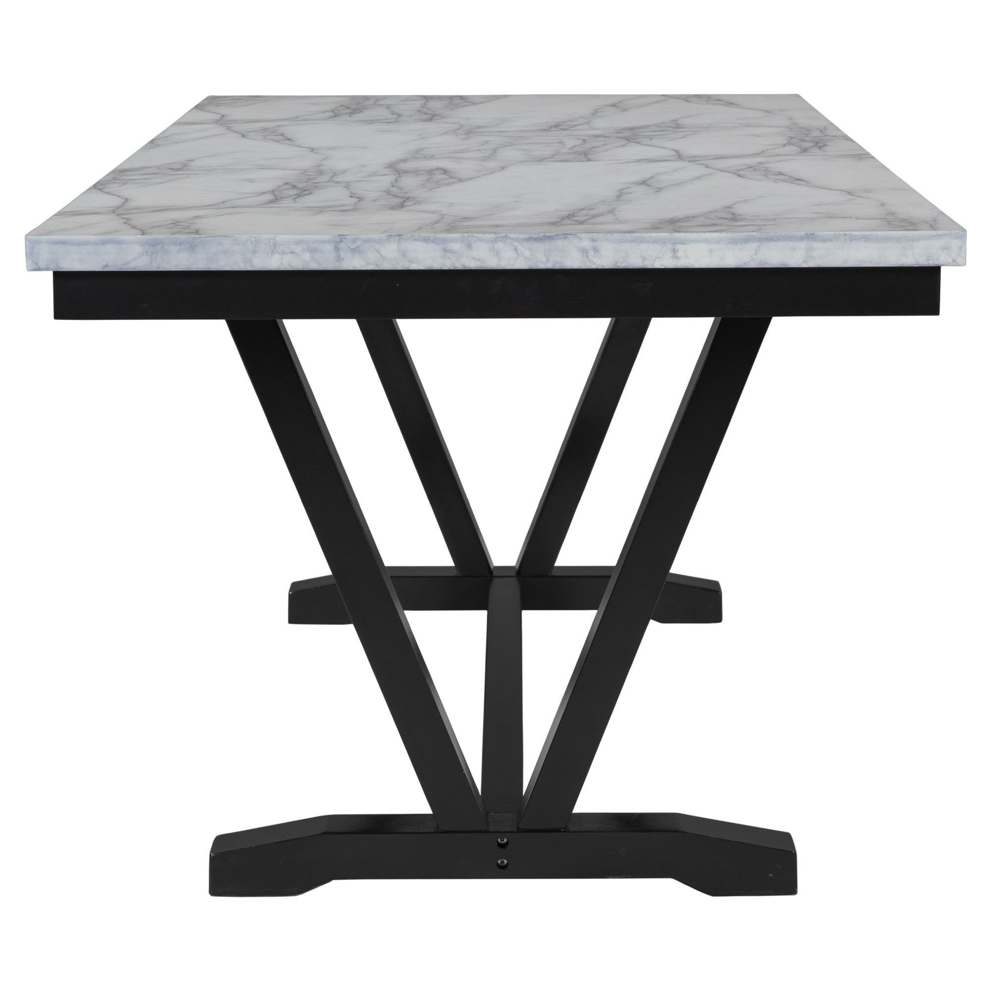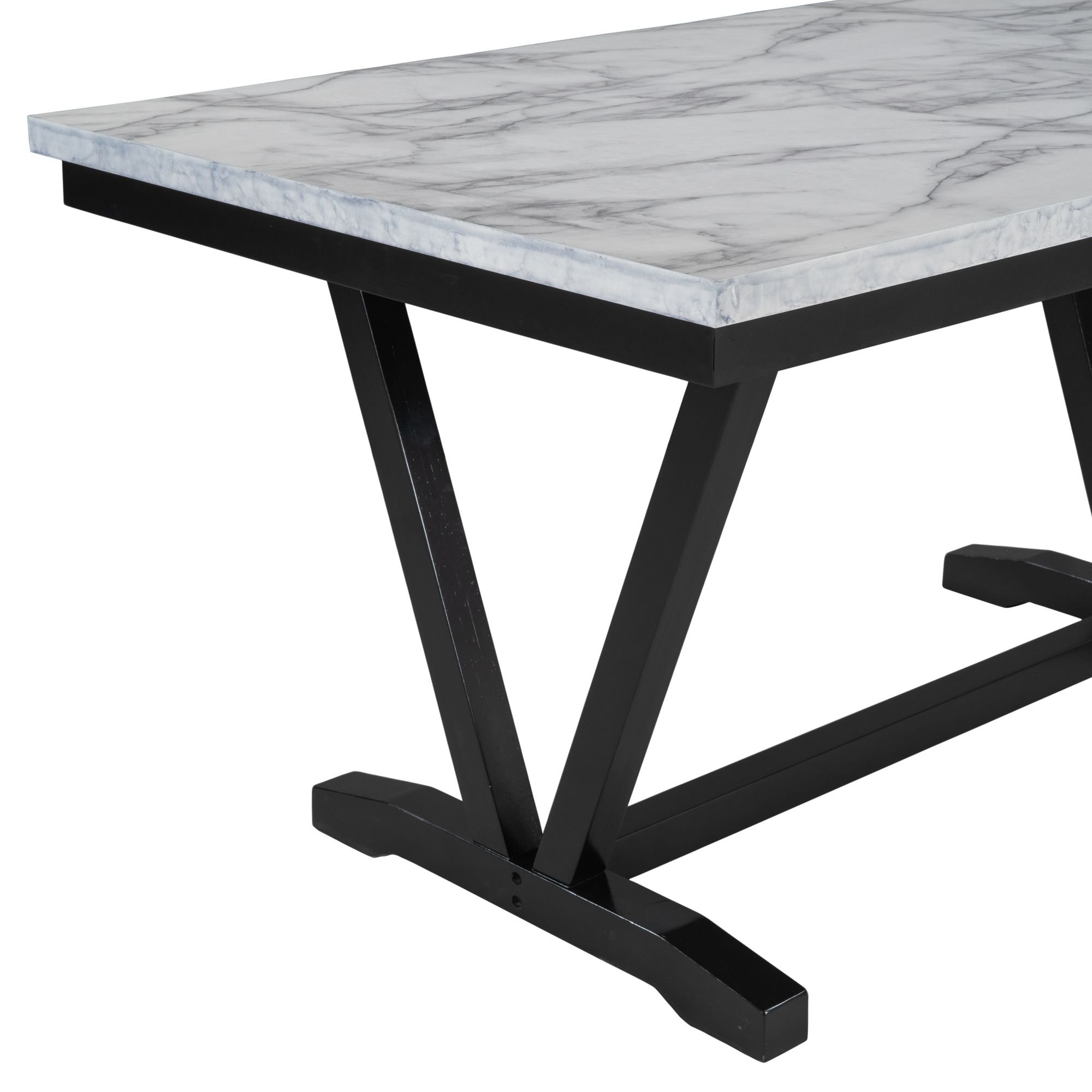 Stable & Solid Structure: For stability in daily usage, this table topped with marble veneers adopts the design of V-shaped table legs and H-shaped leg base. The table legs are manufactured with MDF board, and the part of V-shaped is made of solid wood plywood. The surface of these legs and the frame are painted into black to enhance the solid, traditional feel.