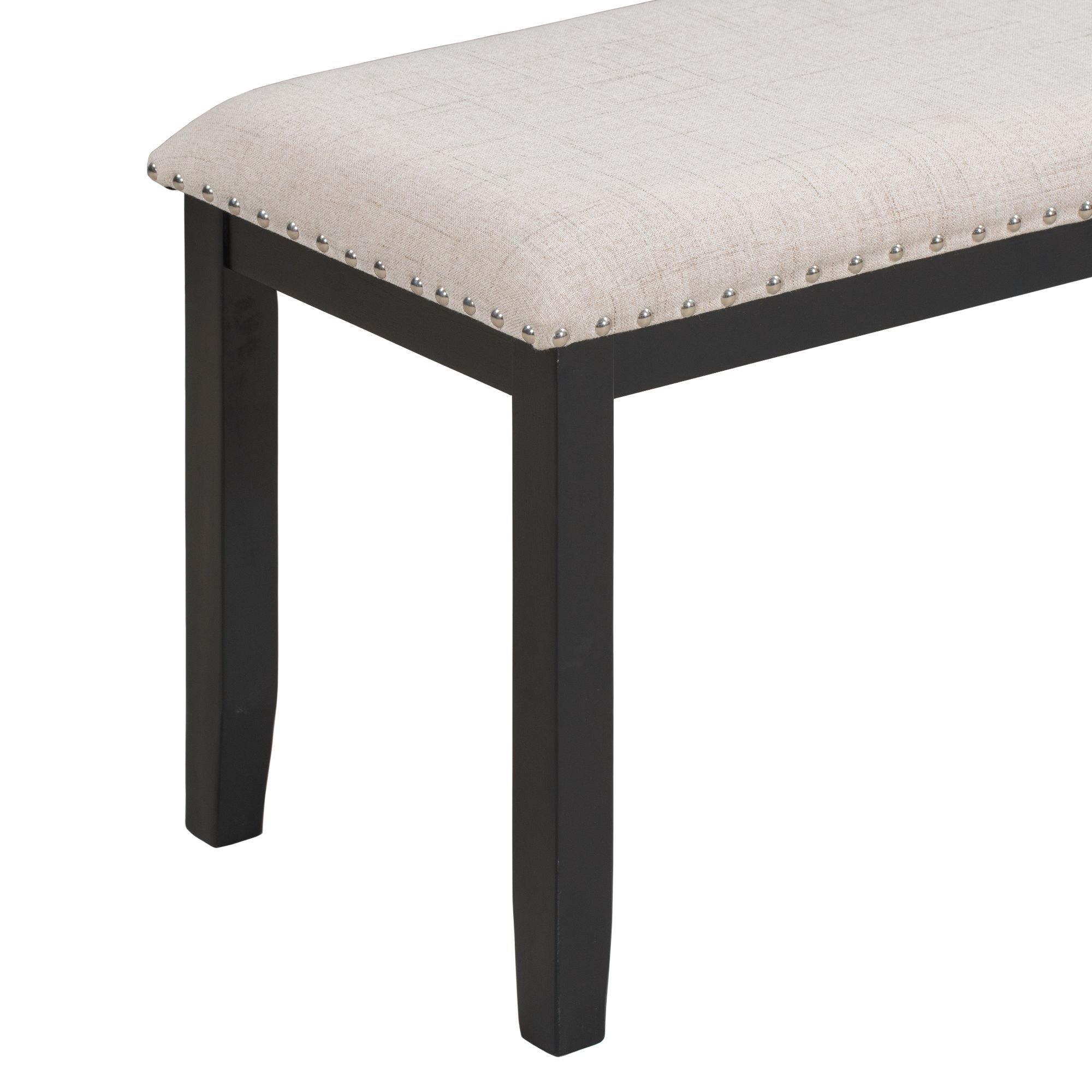 Exquisite Craftsmanship: Many of the details show the craftsmanship. The four upholstered chairs and a soft covered bench are soft and comfortable, with beautiful rivet edges on the seat and back. The thickness of cushion of chairs and bench is 2.3 inches to guarantee wonderful using experiences. Four high back upholstered chairs have curved chair back top styling to provide better back support.